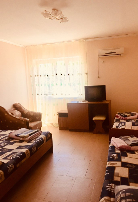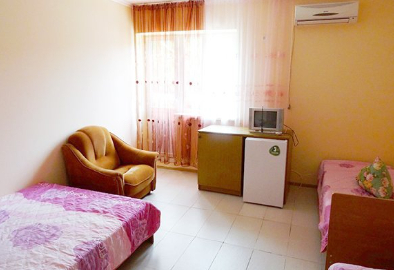 Площадь номера - 22-23 кв.м. 1 комната. 3 осн. места. В номере: телевизор; холодильник; кондиционер; душ; туалет; 2-спальная кровать; 1-спальная кровать; балкон (в части номеров); раковина; шкаф.